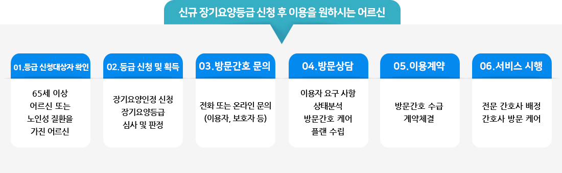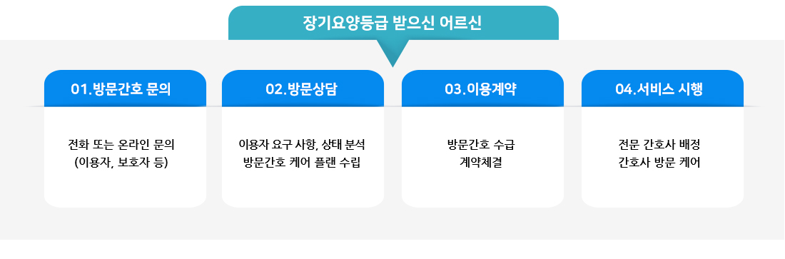 전담 간호사가 주기적으로 방문하여 어르신의 상태를 체크, 간호처치 및 모니터링을 시행하기 때문에 보다 안심할 수 있습니다.