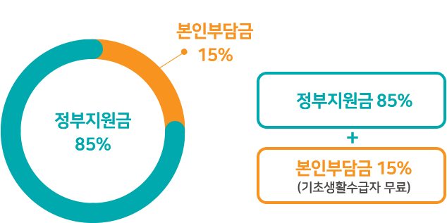 비용부담 ↓ 최소의 비용으로 이용 원하는 분 (국비 85 ~ 100% 지원)